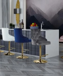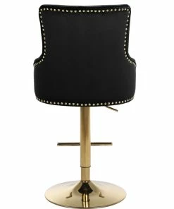 Make this Claude Black Velvet Adjustable Stool everyone’s new favorite seat. The high-back design supports guests in comfort, while rich velvet upholstery in a crisp black color gives the stool a svelte, modern look. Gold nailhead trim adds another level of luxury, and the tufted design enables the cushioned back to keep its loft for maximum comfort. Add it to the bar or the kitchen counter to create a modish vibe in your room.