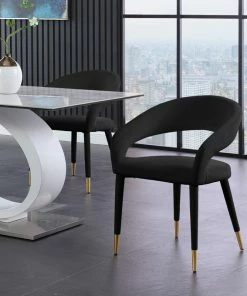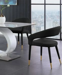 Elegant and eye-catching, the stunning Black Velvet Destiny Dining Chair from Meridian Furniture is the perfect addition to any space.