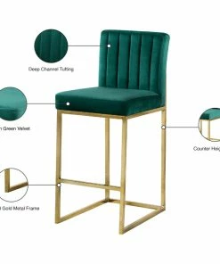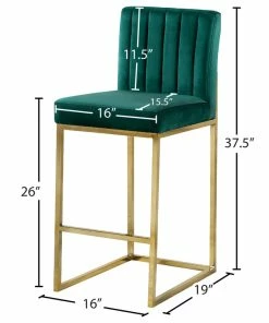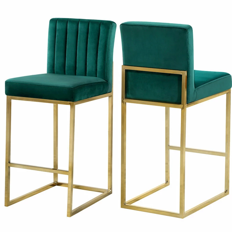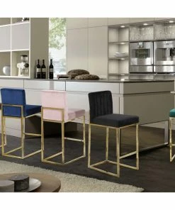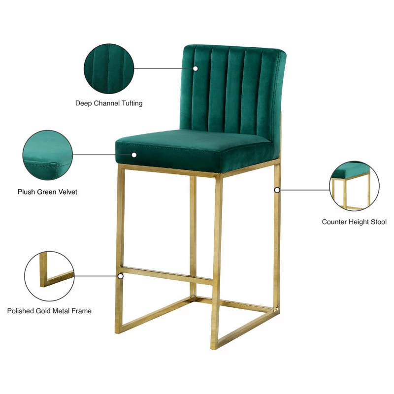 Standing tall above the rest, the Giselle Velvet Counter Stool flaunts the best of modern design. Give your guests a taste of luxury as they sit atop plush velvet seats, which are elevated by sleek, golden legs. These stools incorporate contrasting materials and textures, adding a touch of opulence to your home bar.