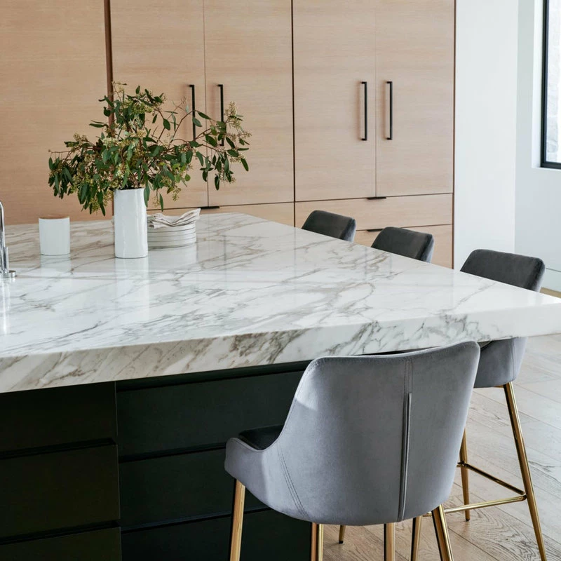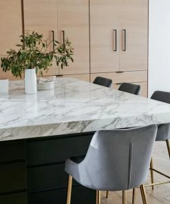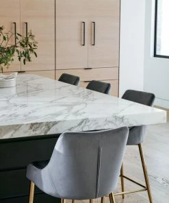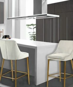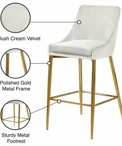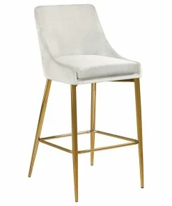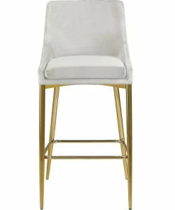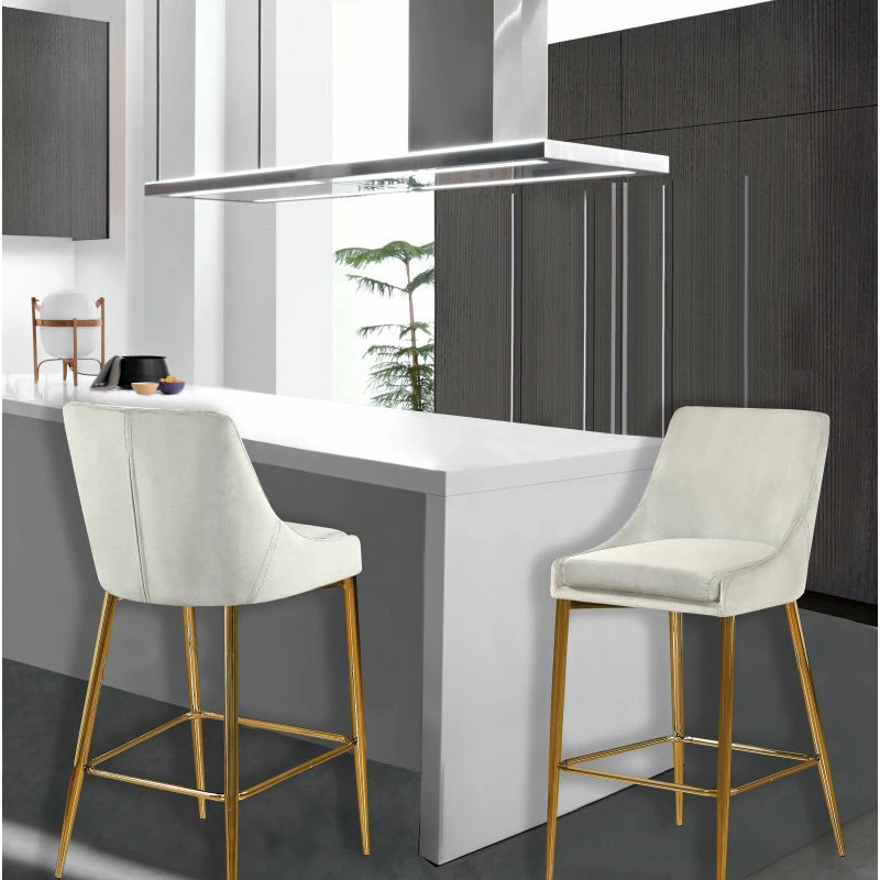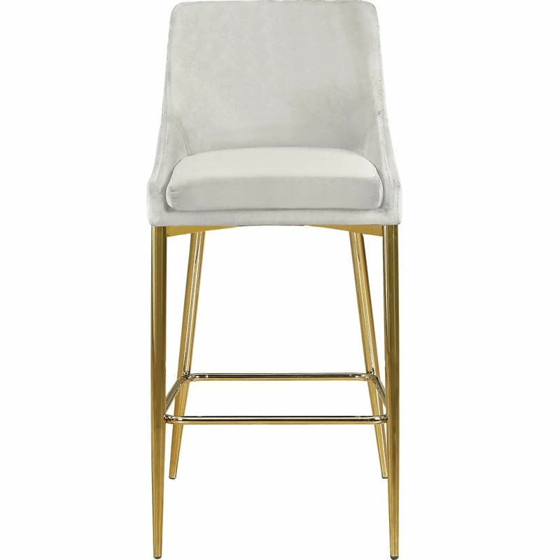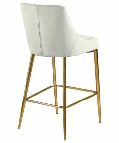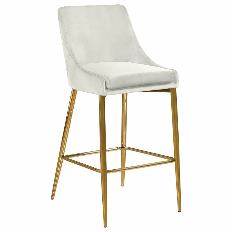 Yield to your contemporary side with this Karina Cream Velvet Stool. This modern stool is counter height, making it an ideal addition to a home bar or eat-in kitchen counter. The cream velvet upholstery brings a neutral element to your room, so it can easily meld with other furnishings. Plump seat and back cushions ensure that guests sit comfortably, whether they’re enjoying a sudsy brew or a stack of pancakes. The polished gold metal frame is sturdy and stout, adding a durable slant to this lovely stool.