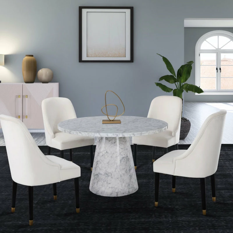 Elegant and eye-catching, the stunning White Faux Marble Omni Dining Table from Meridian Furniture is the perfect addition to any space.