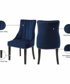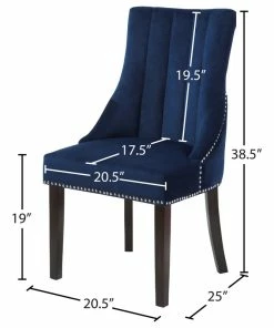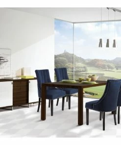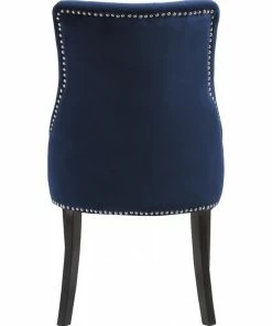 Dine in luxurious style with the Oxford velvet dining chair. Featuring a curved high back, plush cushioned seat and deep tufted velvet upholstery studded with chrome nailheads, this dining chair is sure to take your dining experience to a whole new level. Espresso wood legs provide sturdy support and complement the stunning upholstery for a sleek, contemporary design.