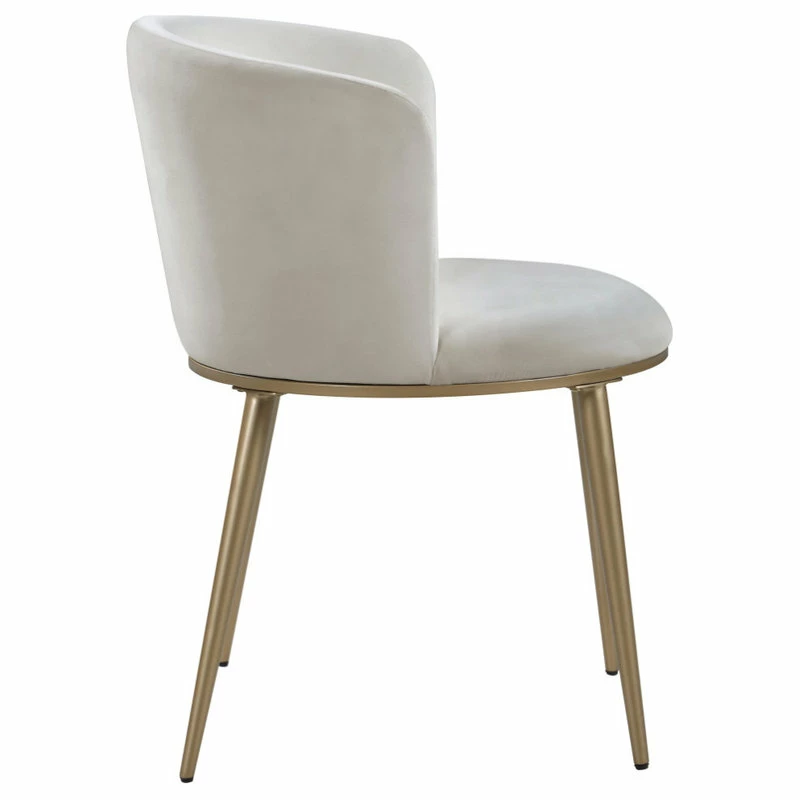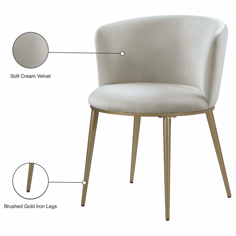 Elegant and eye-catching, the stunning Cream Velvet Skylar Dining Chair from Meridian Furniture is the perfect addition to any space.