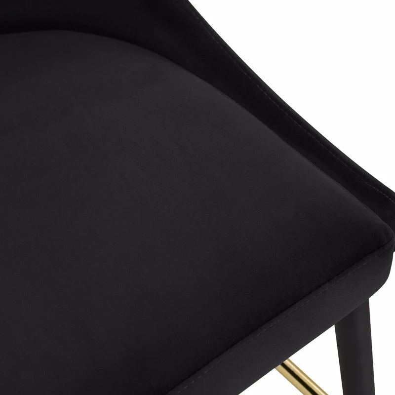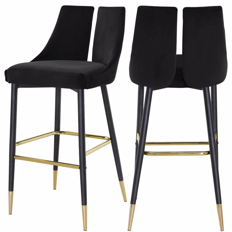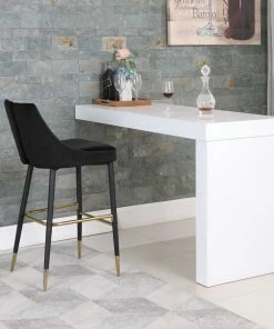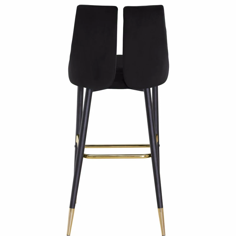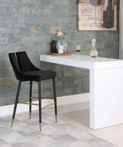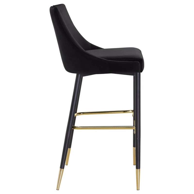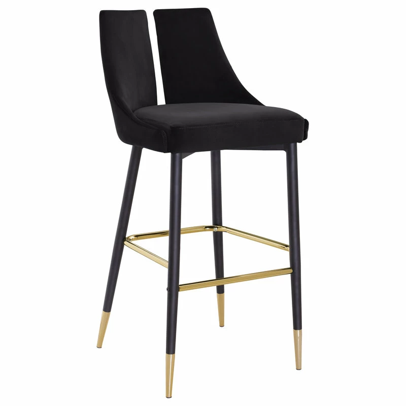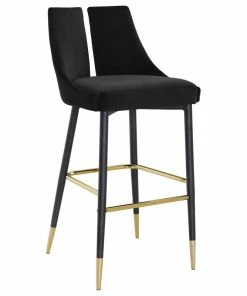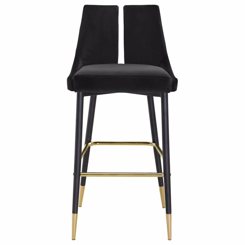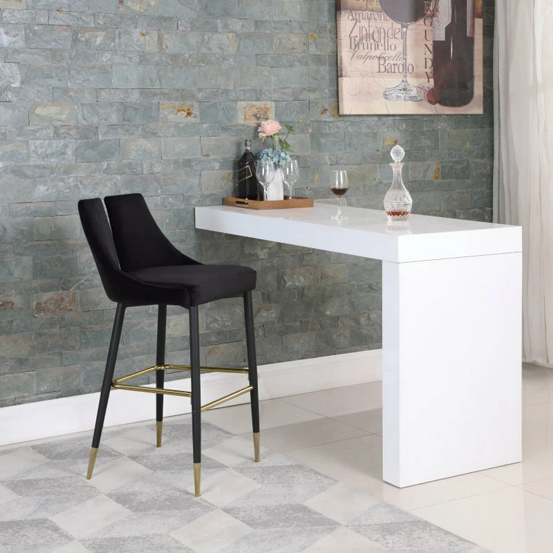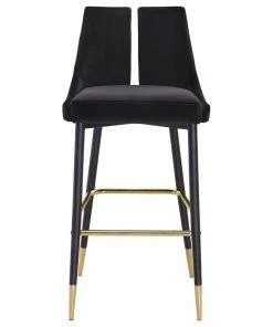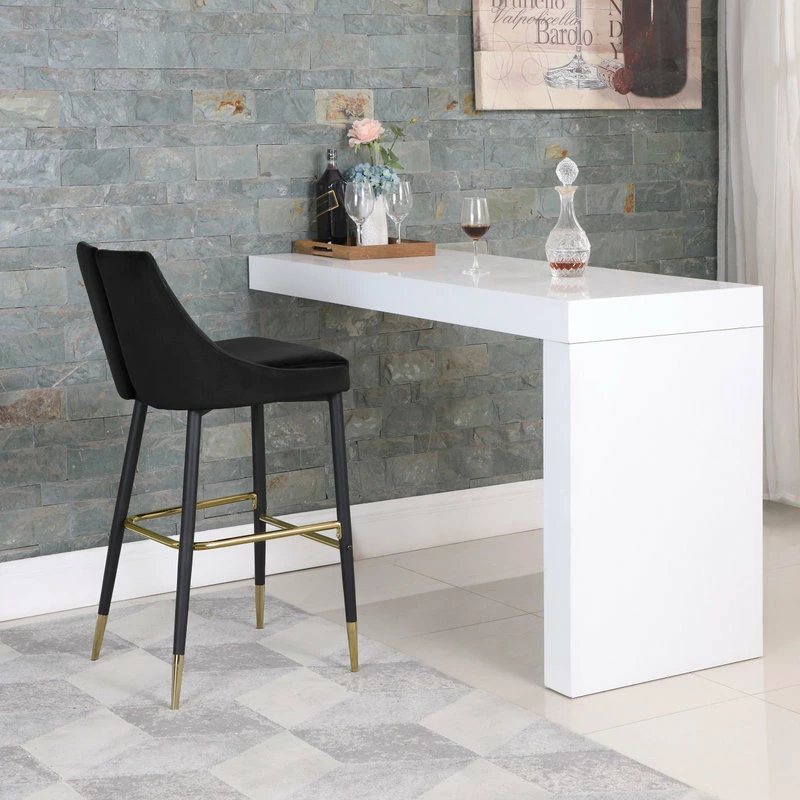 Define your home bar or kitchen counter in style with this Sleek Bar Stool from Meridian Furniture. It features a bar height design for easy integration with your existing setup, and it’s upholstered in soft black velvet material for a luxe look. The contemporary design makes this stool well at home in modern spaces, and the matte black metal legs with gold tips add to its modish appearance in your room.