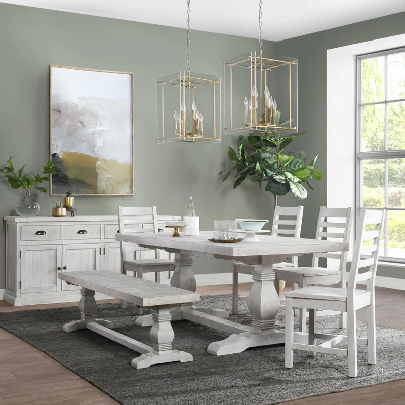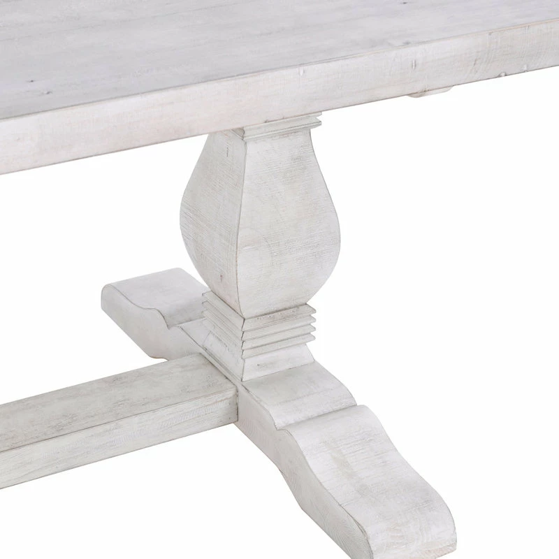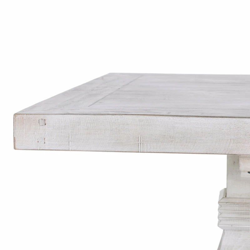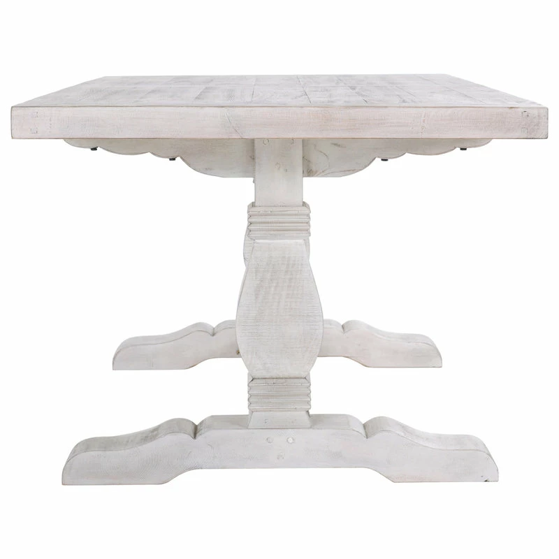 The Amelie dining table fully embraces the true essence of French country romanticism. Carved from real reclaimed pine wood, each table uniquely presents its own beautifully natural imperfections—from differences in knots and grain to the variations of color and texture in the salvaged wood. FSC certified (and meeting every universal sustainability standard), this dining table turns reusable wood into a rustic treasure.