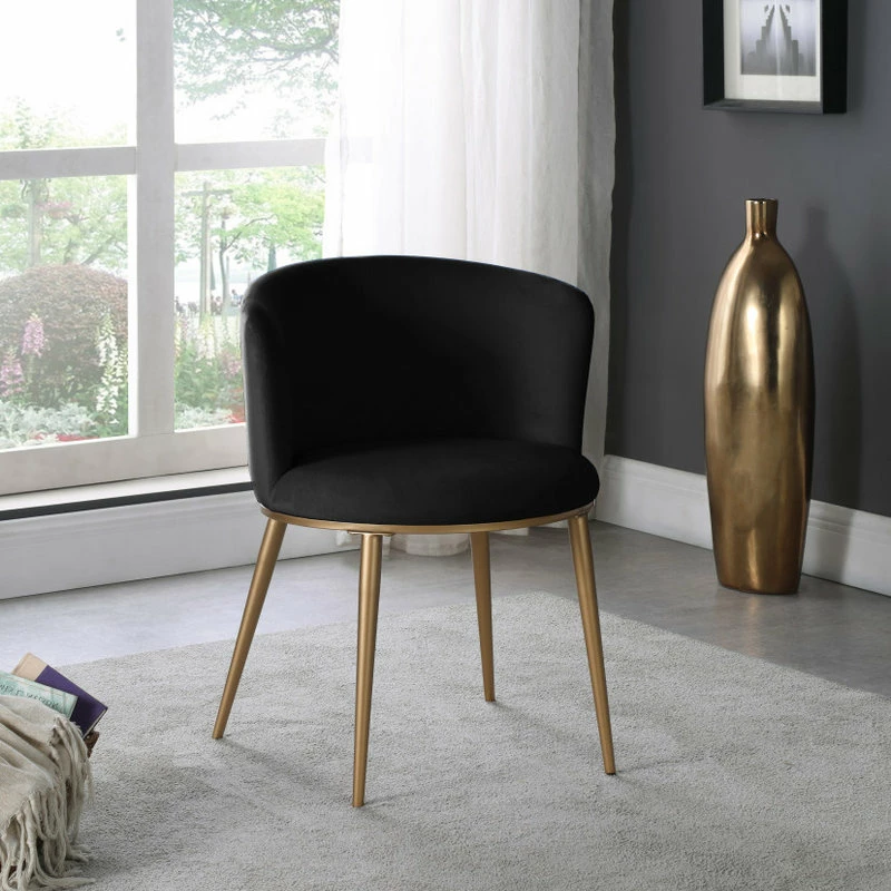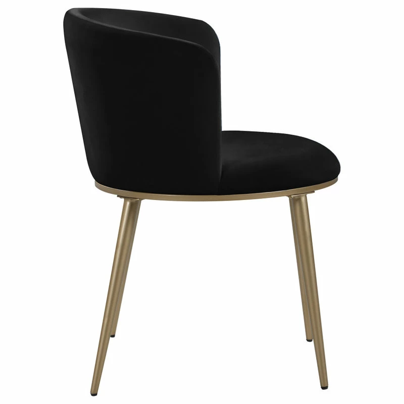 SKU: 965Black-C Categories: Chairs, Dining Chairs Tags: Brushed gold iron legs, Comfortable, Contemporary, Contemporary design, Elegant, Furniture, Modern, Rounded back, Soft black velvet