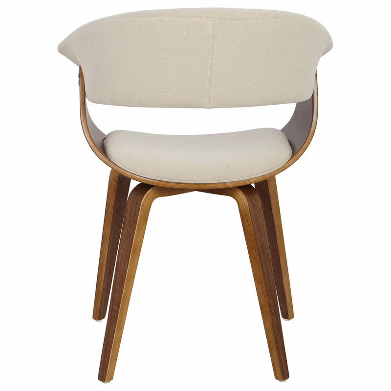 Bend the rules and break the mold with the Antonia. A swanky showstopper in the den or the dining room, this mid-century chair will have your guests doing double-takes as soon as they walk in. Curved wood accented by a fabric, cushioned seat and wraparound backrest offer both comfort and style. Stylishly exposed bolts and arched walnut legs round out its look to make for a unique piece thatβs nothing short of a knockout.