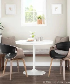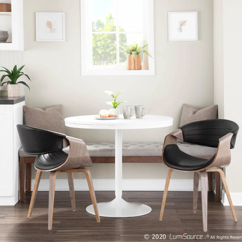 The sleek, curving borders of the Aria dining chair offers a comfortable yet stylish seating solution that perfectly complements your midcentury style. Its simplicity adds to its complexity, with a gorgeous bitonal construction and vegan leather that creates an elegant contrast for your eye to glide across. Satisfied and charmed, its strong and refined design brings extra character to your dining table, or graces any room as a standalone accent chair.