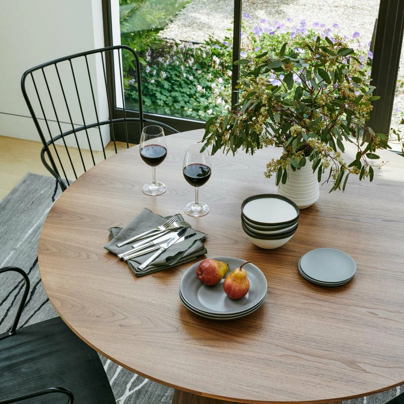 With its simple yet robust silhouette, the Garrett dining table easily blends into any space. The thick base provides a sturdy center of gravity to support its smooth round top. Comfortably fitting up to four chairs, this gorgeous table upgrades any ambiance with minimal effort. Pull up a seat for morning breakfast or brunch or intimate dinners with the ones you love most.
