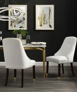 Our trendy dining chairs in set of 2 add stylish intrigue to your dining room and kitchen area. These beautifully upholstered dining chairs create a warm, inviting seating option with a unique style that will add an aura of sophistication to your dining room with its alluring comfort and luxurious style.