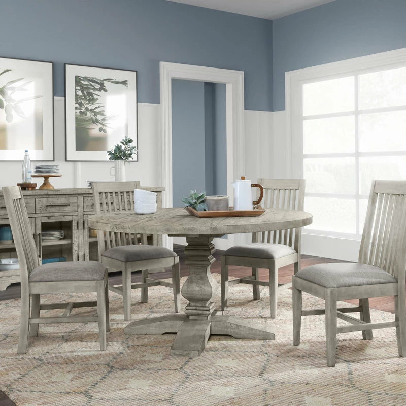 Break bread with the charming style of the Harvestโa transitional dining table with a look as traditionally timeless as Sunday breakfast. Reclaimed solid pine wood makes up the entirety of its pedestal-style bases and rustic top. Built for the rigors of everyday use, this durable two-inch top sets the stage for gatherings of up to eight of your nearest and dearest.
