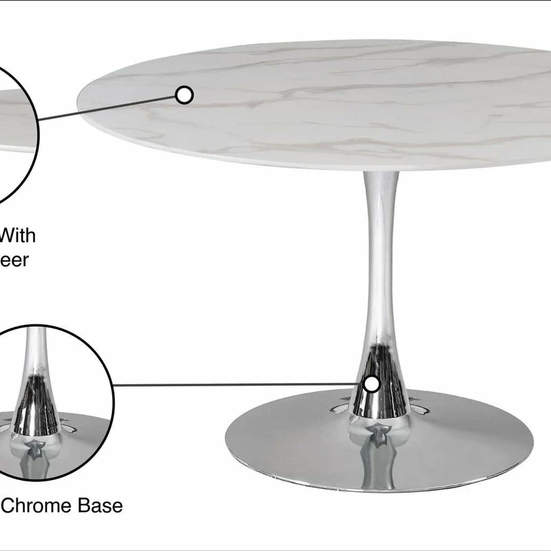 One small step for your dining room, one giant leap for your home. This contemporary table exudes elegance with a curved base, a marble-look glass top, and a footprint fit for almost any square footage. Leave guests starry-eyed with its sophisticated design thatβs unique yet approachable. Sturdy and stylish, the Luna is the understated statement piece youβve been waiting for.