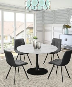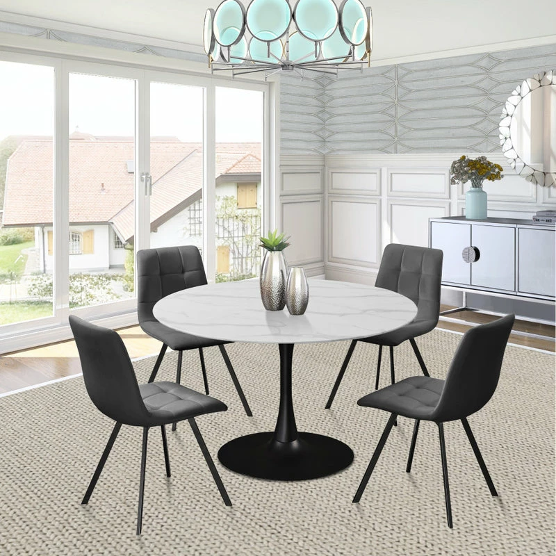 SKU: 977-T Categories: Dining Tables, Kitchen & Dining Furniture Tags: 10mm thick glass with marble veneer, 36" round faux marble dining table, Contemporary, Contemporary design, Dining table, Elegant, Furniture, Modern, Rich gold base, Upholstered, Velvet