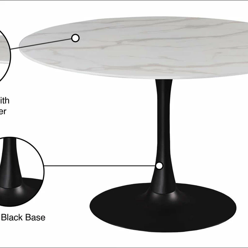 One small step for your dining room, one giant leap for your home. This contemporary table exudes elegance with a curved base, a marble-look glass top, and a footprint fit for almost any square footage. Leave guests starry-eyed with its sophisticated design thatβs unique yet approachable. Sturdy and stylish, the Luna is the understated statement piece youβve been waiting for.