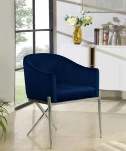 Deals 👍 MOD The Parker Dining Chair, Velvet, Navy, Chrome Legs 🎉