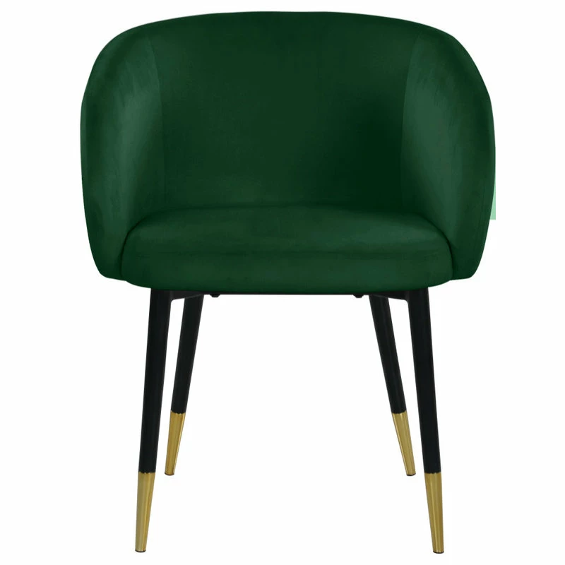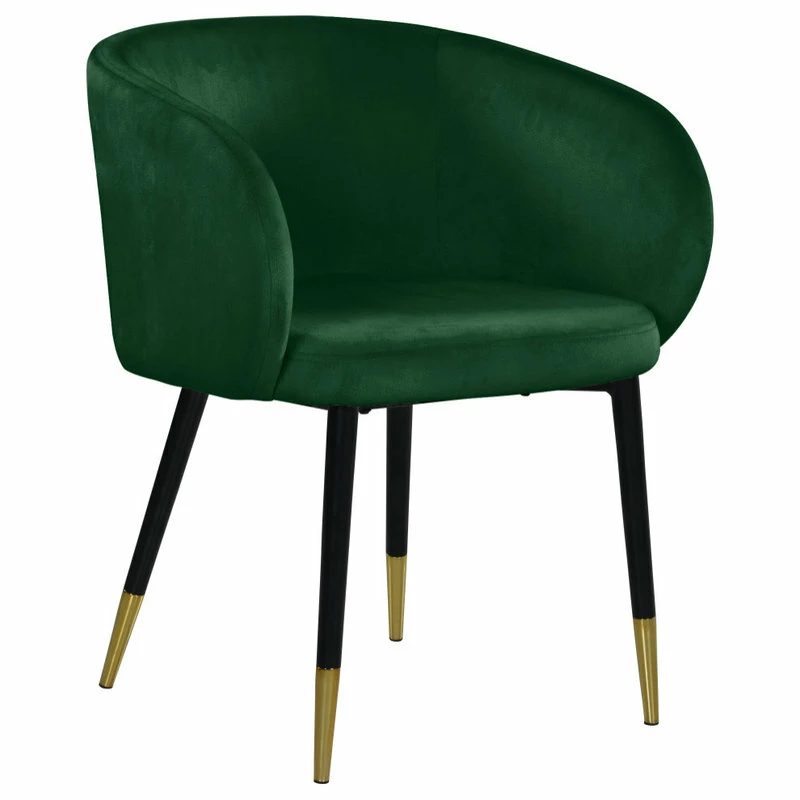 Bring home your new throne with the stylish Soho. Covered in lush velvet, this contemporary dining chair is as comfortable as it is durable. Elegant metal legs in black stretch down to gold-finished tips that accentuate any flooring. Guests will fall in love with its curved back and sides that envelope you in almost all-around cushioning. Sink into the Soho and youโll find that no matter where you place it, luxury will be at the forefront.