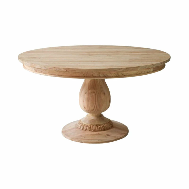 Whether gathering for a quiet breakfast or a lovingly crafted dinner, this elegant yet rustic French country style pedestal table makes everyone feel at home. With an effortless combination of provincial charm, solid wood, and delicate, hand-carved features, the Winnie dining table blends tradition and comfort to create an intimate dining space. Apply your own preferred paint or stain for a personal, customized design.