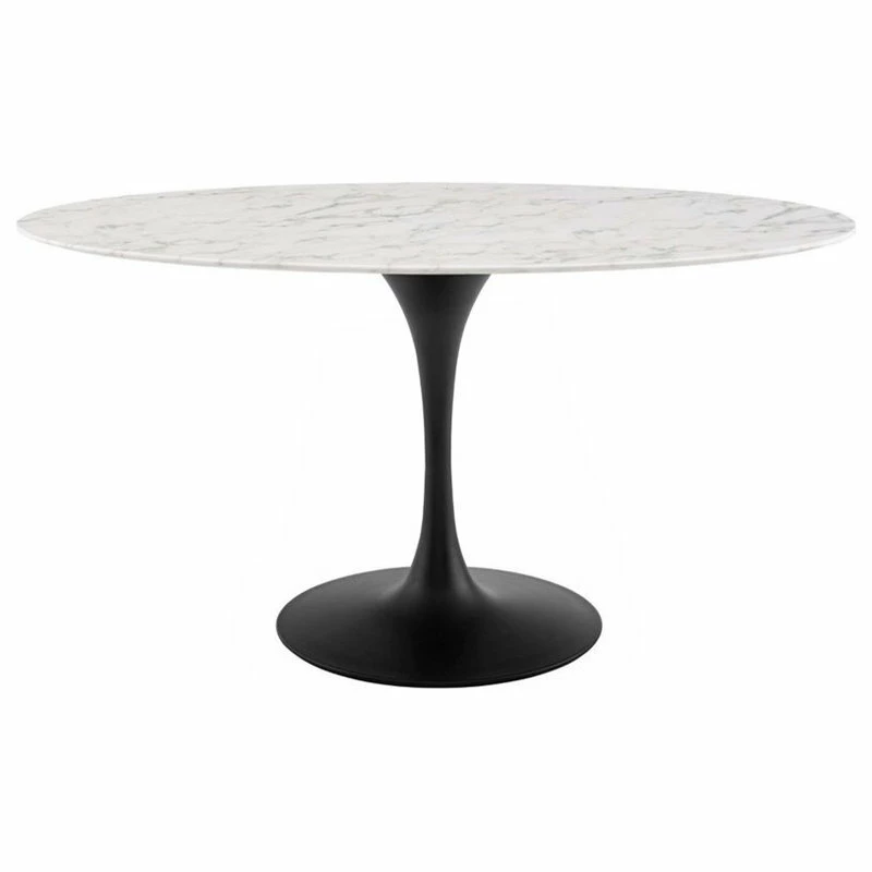 Reflecting a seamless organic shape and timeless form, the Lippa dining table has become a symbol of modernism for over the past 60 years. Before its release, homes were filled with clunky remnants of an industrial age long gone by. But in order to advance into the new world, homes first had to transition from the traditional square table, into a piece that connoted progress. The base and dimensions are true to the original specifications, while the tableβs oval-shaped artificial marble top, and tapered metal base, are carefully lacquered with a scratch and chip resistant finish.