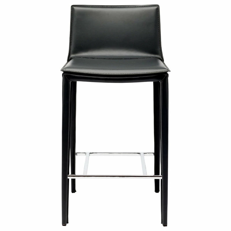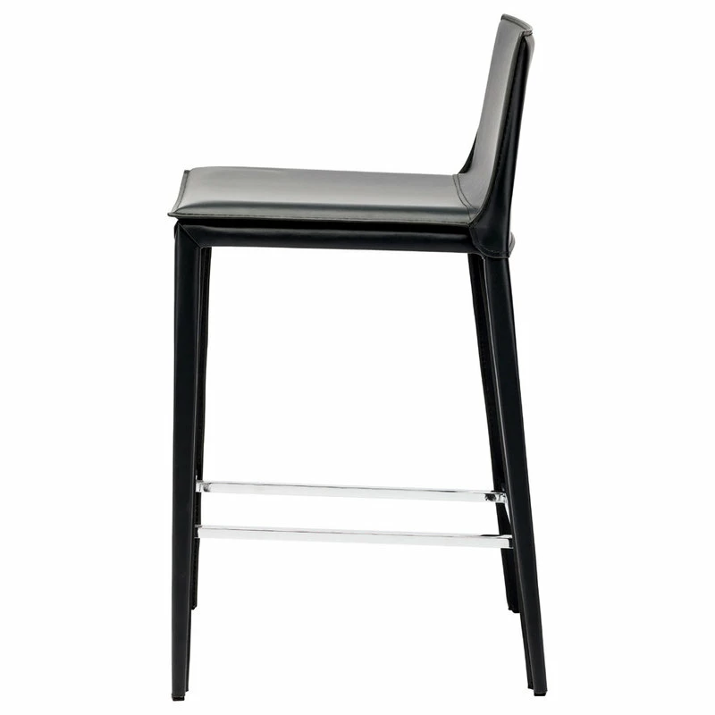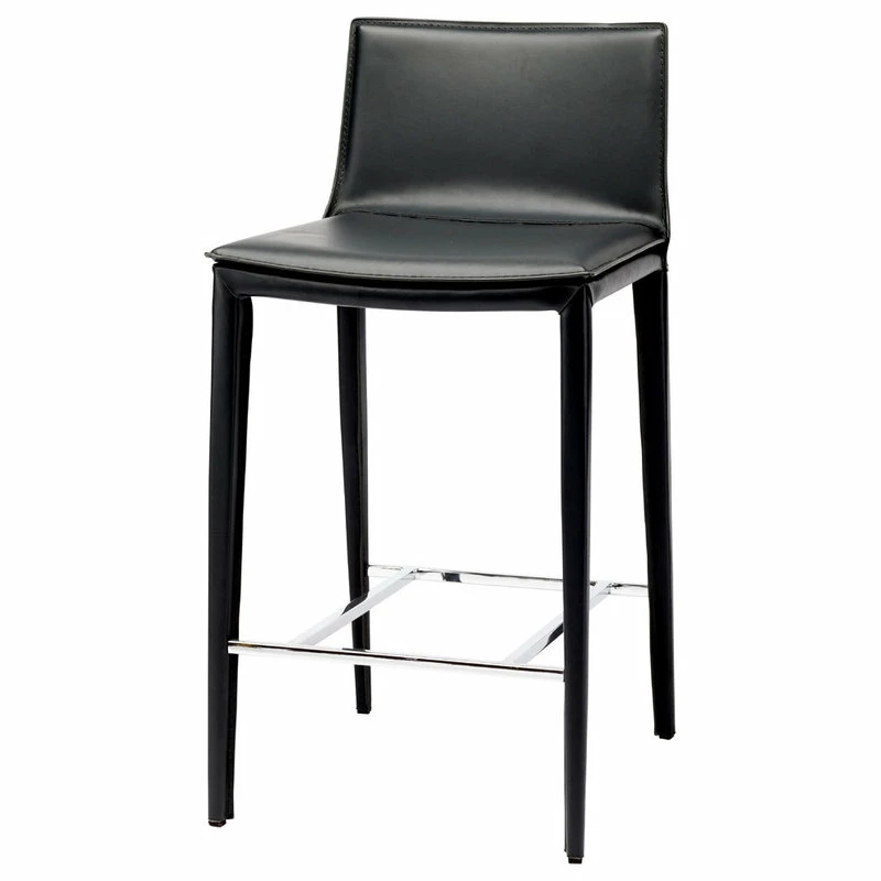 Wine, dine or work in style with the Palma Counter Stool. This chic seat features a low-profile back that looks sleek without sacrificing comfort. Its all-leather upholstery is complemented by polished metal footrests for a smart contemporary appeal that sits well in any design.