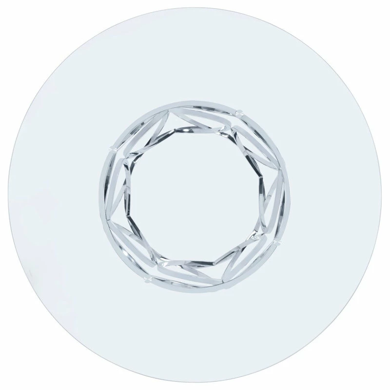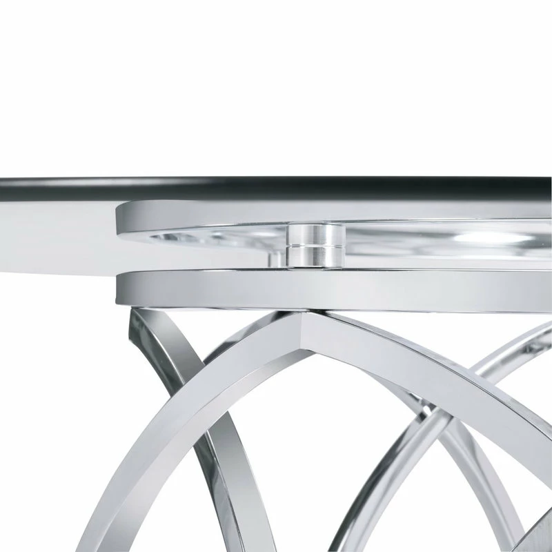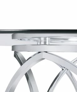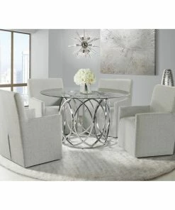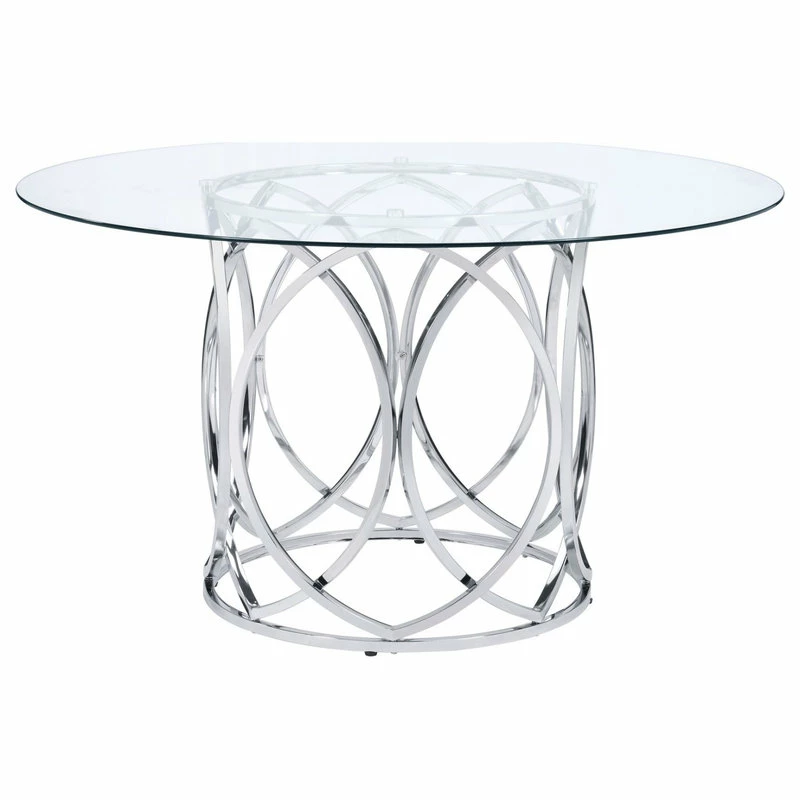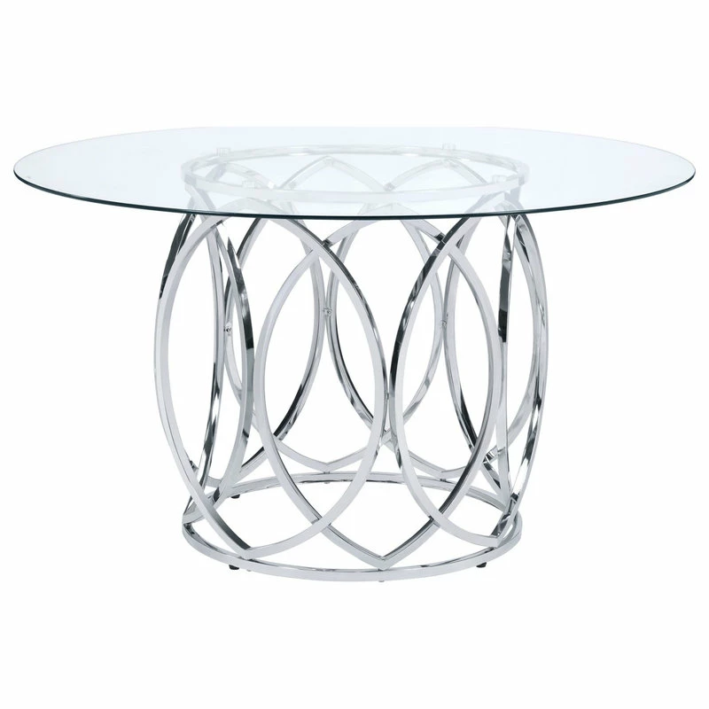 The Picket House Furnishings Marcy Round Dining Table is what you have been shopping for! The ultracontemporary dining table is created with a tempered glass table top and a sleek, chrome table base. Circular designs accent the round drum table base. This table can accommodate up to four people comfortably, with standard dining height chairs. This dining table can be perfect for intimate family dinner or a cocktail party with friends. Pair this table with upholstered side chairs or arm chair set to complete the ultracontemporary setting.