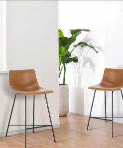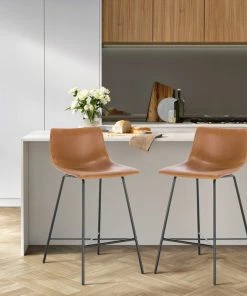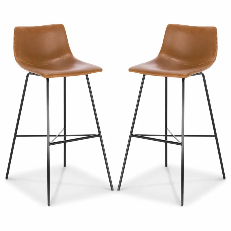 Pull this handsome bar stool up to the bar or kitchen island for a signature urban look. Designed with a gently scooped seat and low-profile back upholstered in beautiful, yet durable textured leatherette, its subtly exposed saddle stitching will leave your guests impressed. A welded steel base ensures this robust bar stool is a great choice for everything from kitchen countertops to modern restaurants.