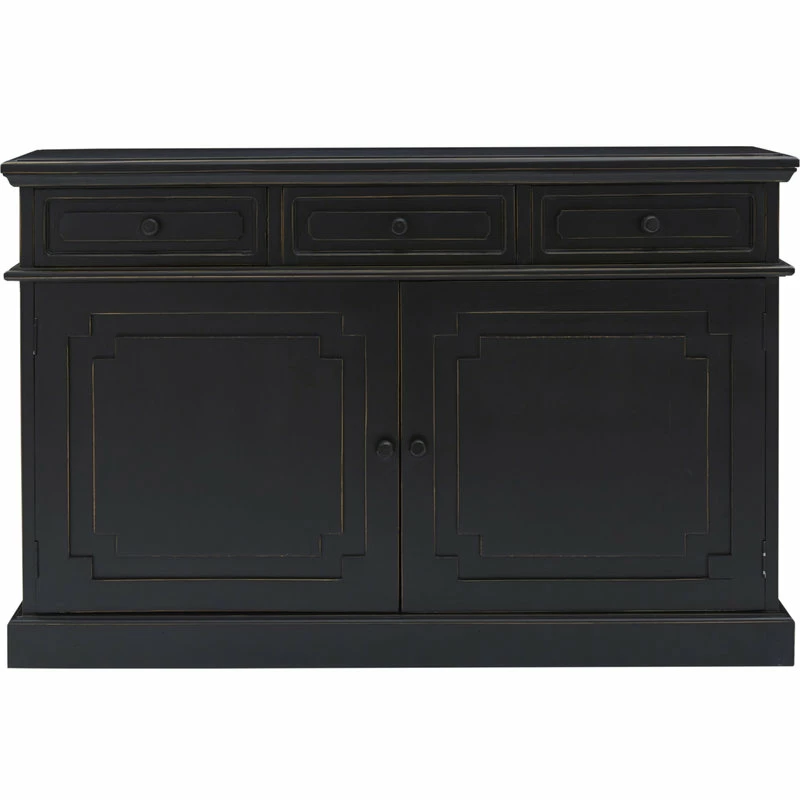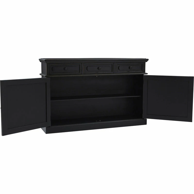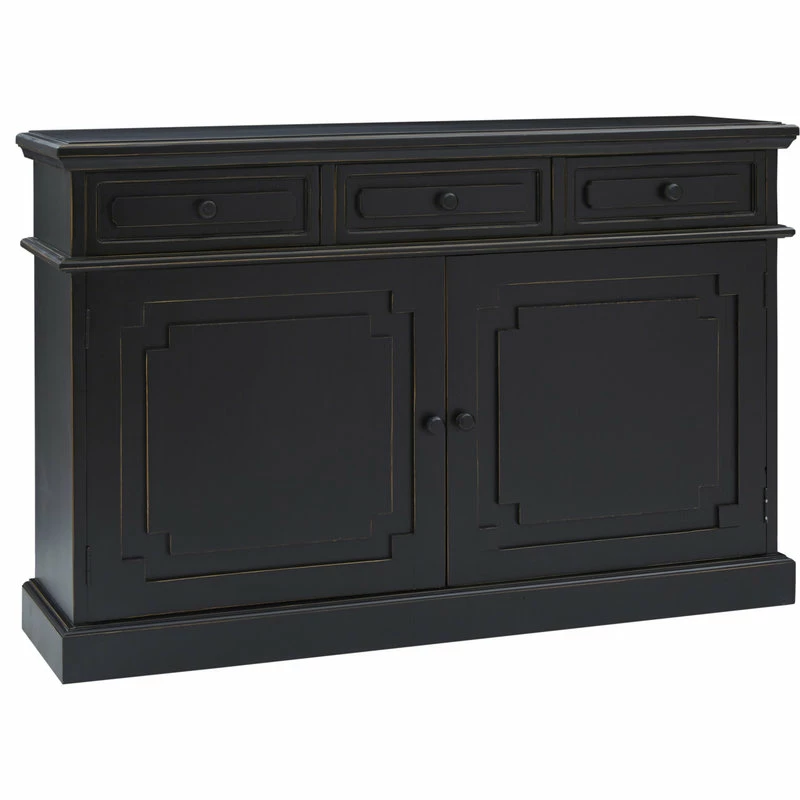 This Credenza will add personality and charm to any room of your home. It’s casual classic style combined with this absolutely gorgeous Black finish is a must have for today’s savvy casual customer. It’s definitely for the person who knows style when they see it and not afraid to use it. A perfectly proportionally slender piece with shaped moldings that add dimension and depth. Classic finished wooden knobs add function and support the simplicity of the design. As if that’s not enough, once you get past the beautiful exterior charm there’s also three drawers and two cabinet doors for storage.