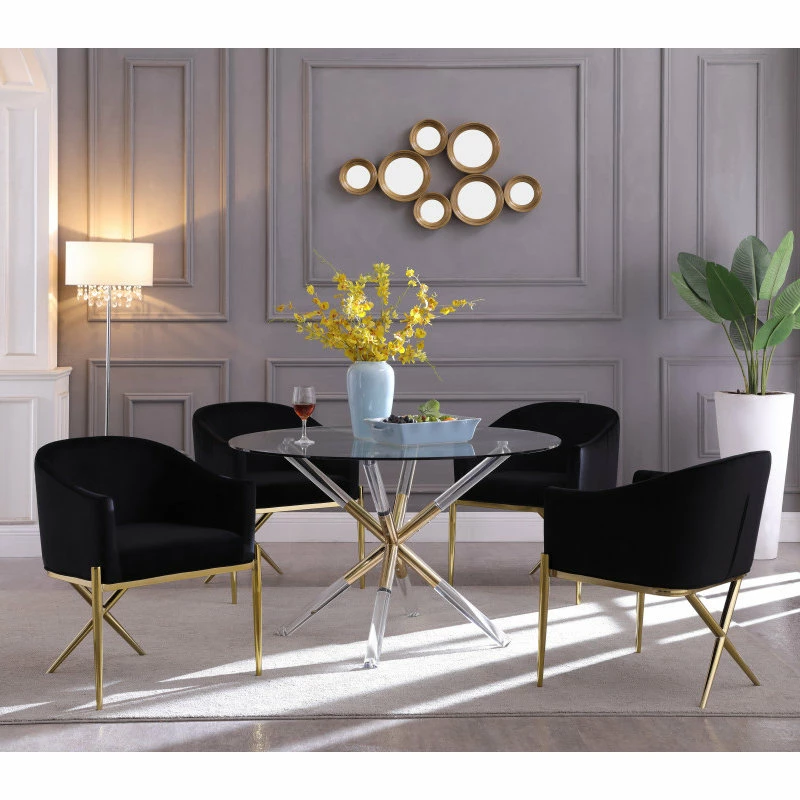 Some things are meant to stand out. Behold the iconic, eclectic, Heliosβan impressive dining-room addition that would look equally at home in any art museum. Topped with an elegantly designed, solid glass surface, this table has a gravity that pulls guests in and keeps them gathered for hours on end. The real conversation starter? Its enchanting acrylic and gold legs that speak for themselves.