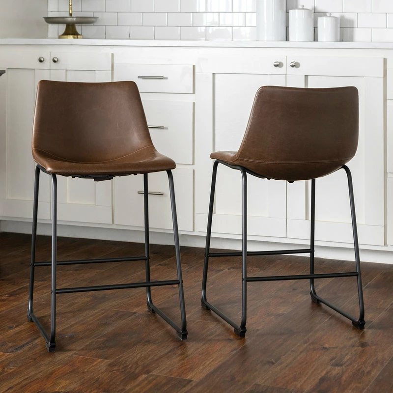 This sophisticated and sleek stool is sure to modernize your countertop seating. The Industrial Counter Stool has been dressed up with soft faux leather and accented with steel legs and an incorporated metal footrest. By taking a traditional design and updating it for the modern home, the Industrial provides practical seating for your dining space and looks stylish doing it.