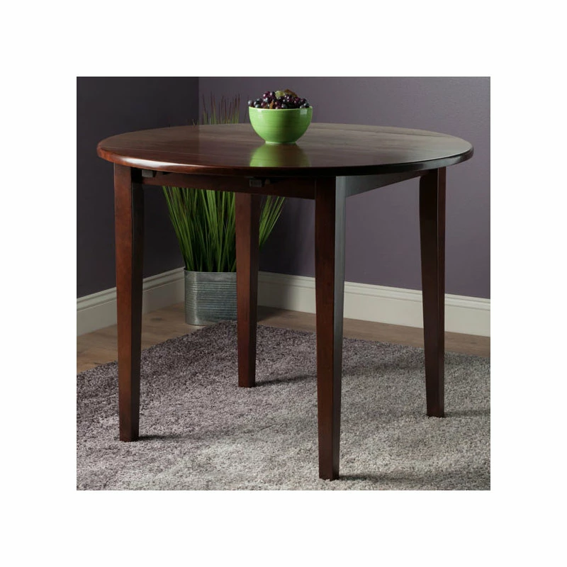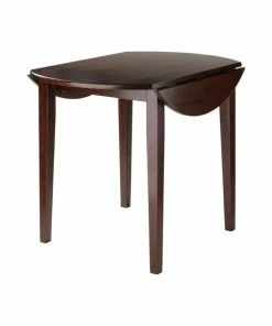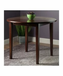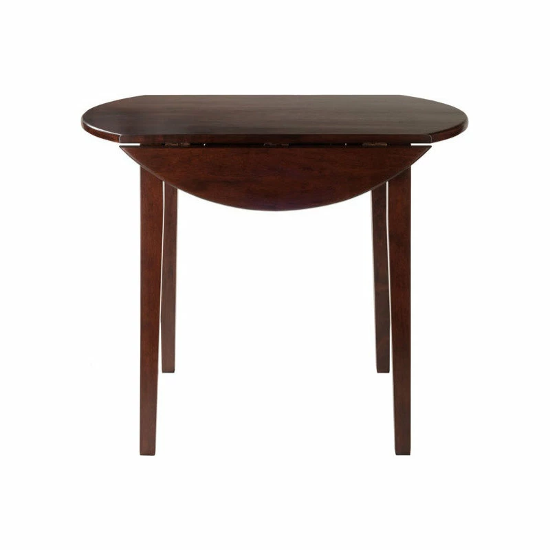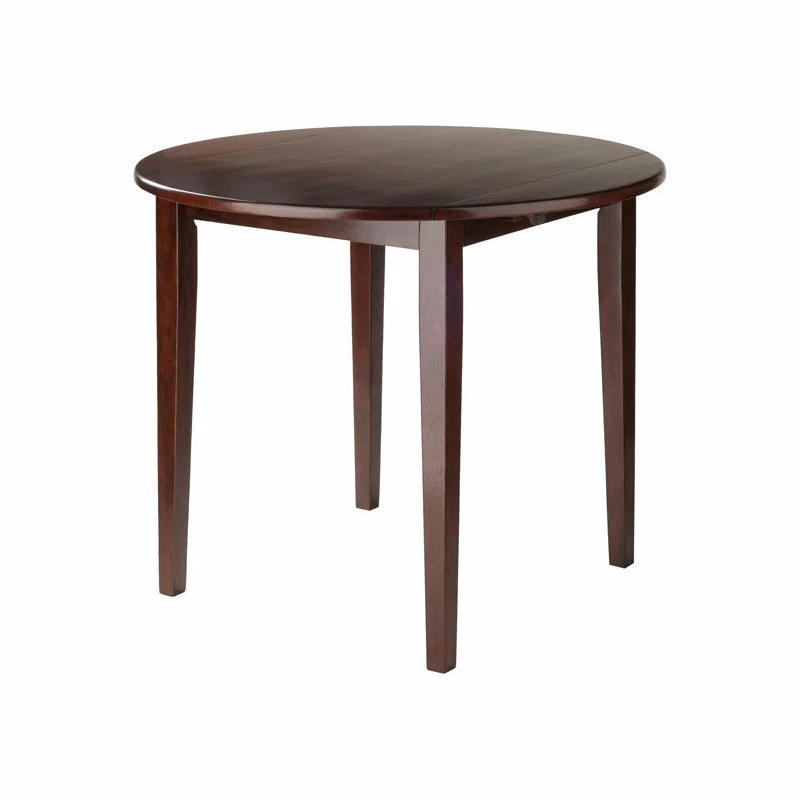 Simplicity and versatility define the Clayton Round Drop Leaf Table. With two drop leaves, the table seats four in the dining area or kitchen. It’s also an ideal addition to the family room or for use as an extra workspace. Lower one or both leaves to create the size that’s right for your space. Made of solid wood in a Walnut finish. The table top diameter with leaves extended is 35.98″. -Top Diameter 35.9″-Overall dimensions with leaves closed: 35.9″W x 25.5″D x 29.1″H-Drop Leaf dimensions: 27″W x 6.1″D-Top dimensions: 35.9″W x 23.7″DAssembly requiredships in 1 boxFeatures
