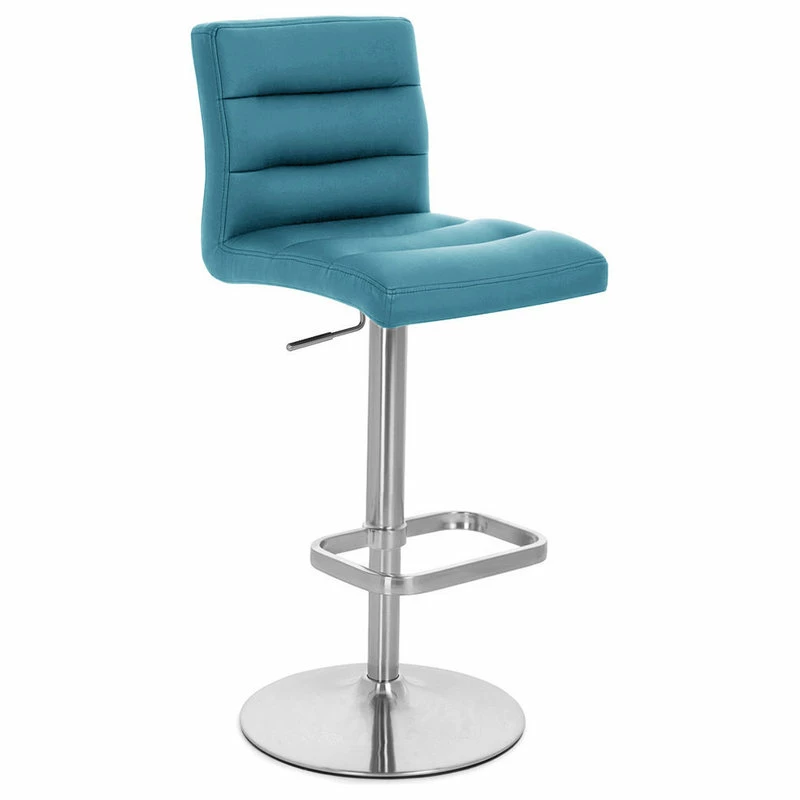 Cheapest ✔️ Zuri Furniture Modern Lush Bar Stool Teal Leatherette Brushed Stainless Steel Adjustable Base 🔔